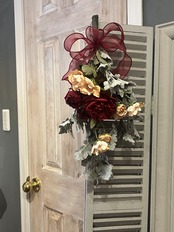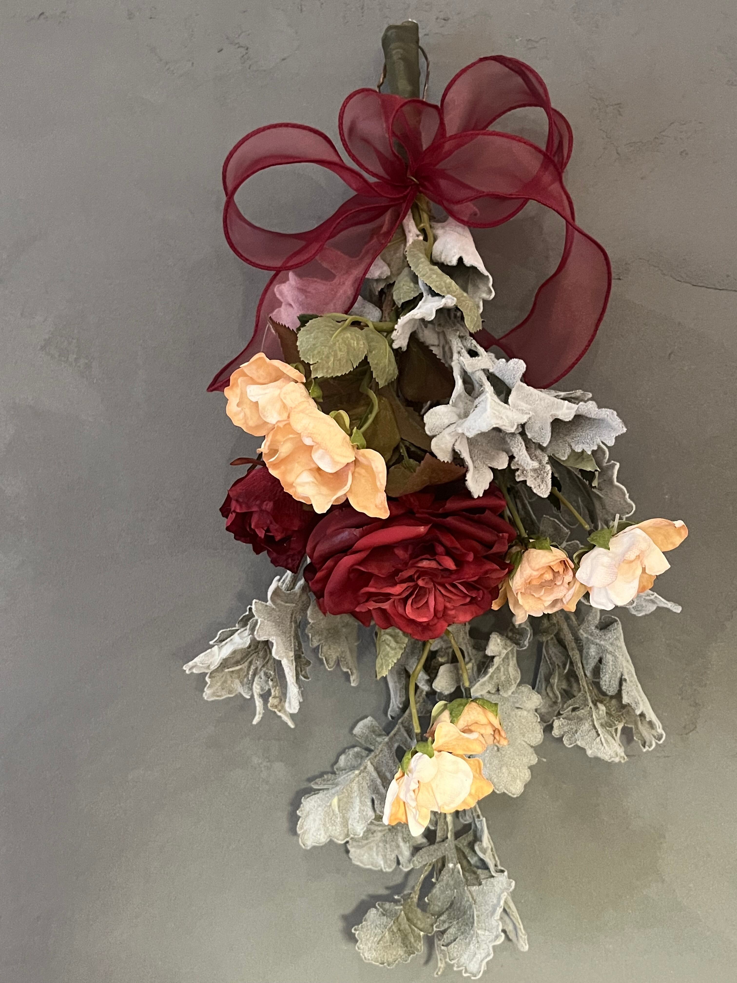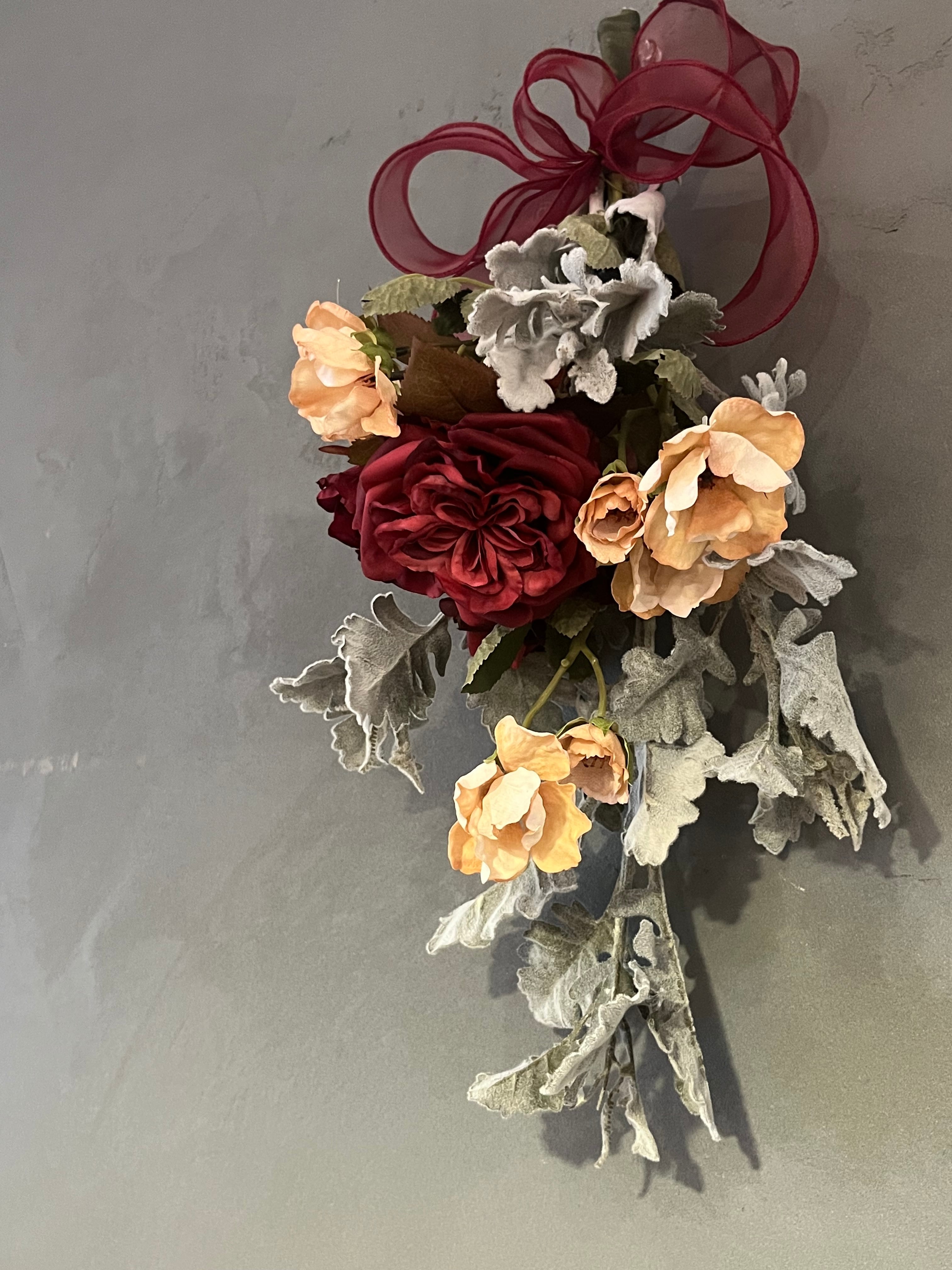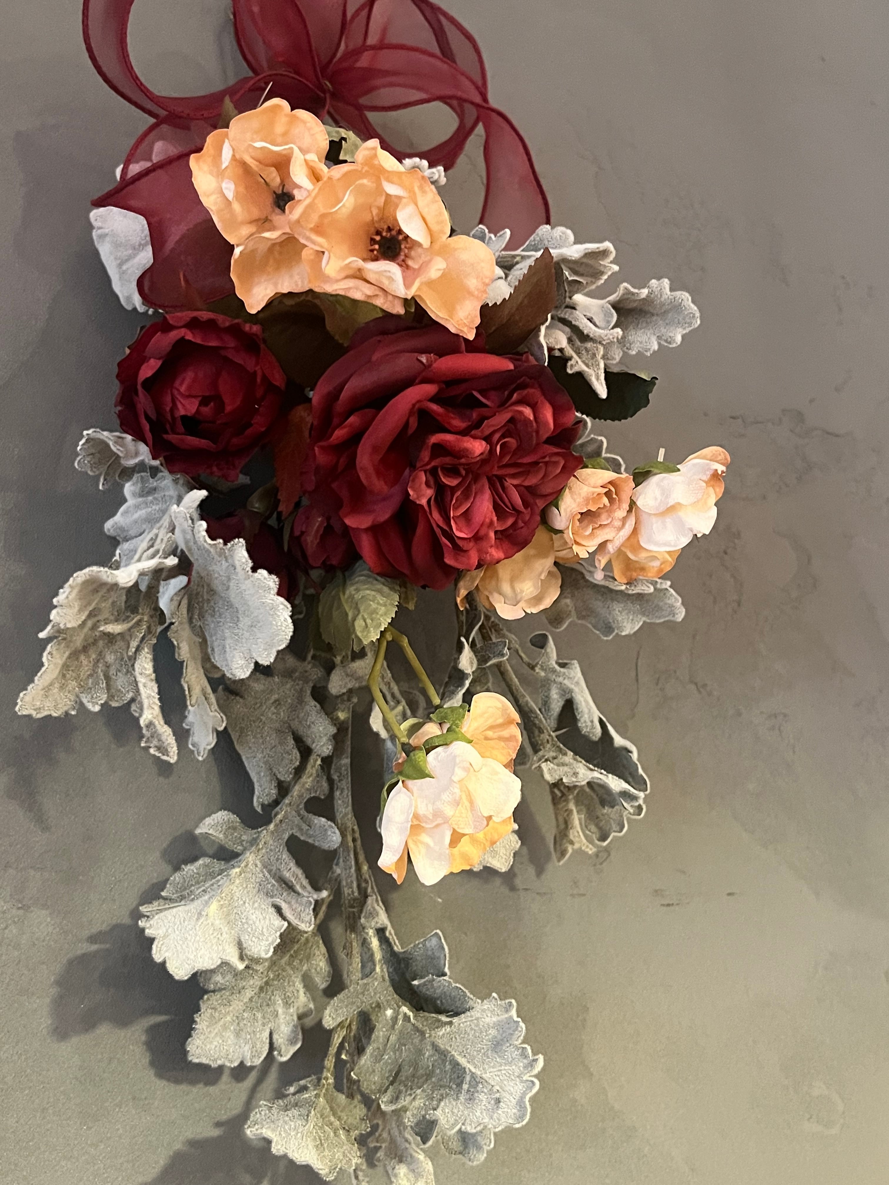 ボルドーの薔薇と、モーブピーチのスプレー薔薇りダスティミラー。